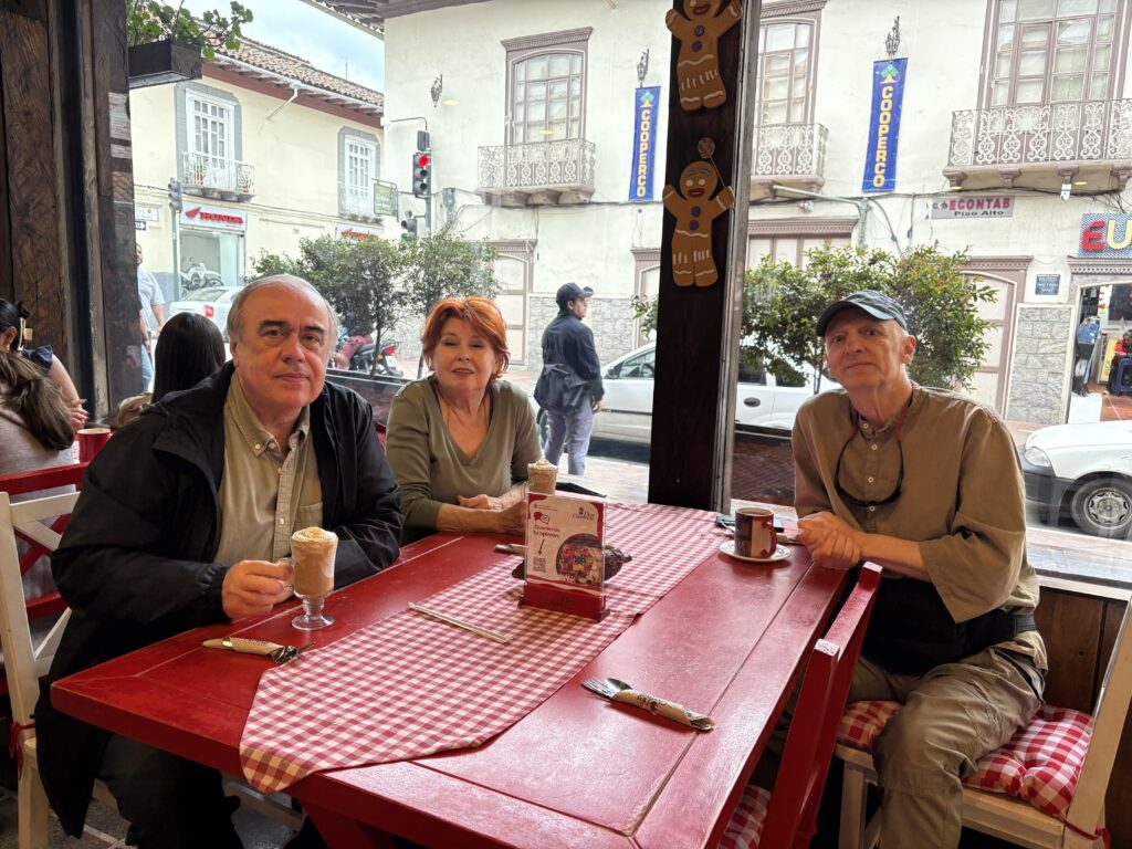 Ca parte a „pregătirii de călătorie”, văzusem la un moment dat pe YouTube un interviu cu un american care vorbea despre avantajele pe care le-ar avea cineva care s-ar stabili în Cuenca. Era interesant, mi-am zis „ia să ne vedem cu tipul ăsta!”, i-am aflat adresa de e-mail de pe blogul său (e călător și fotograf profesionist) și… întîlnirea s-a produs! 😀