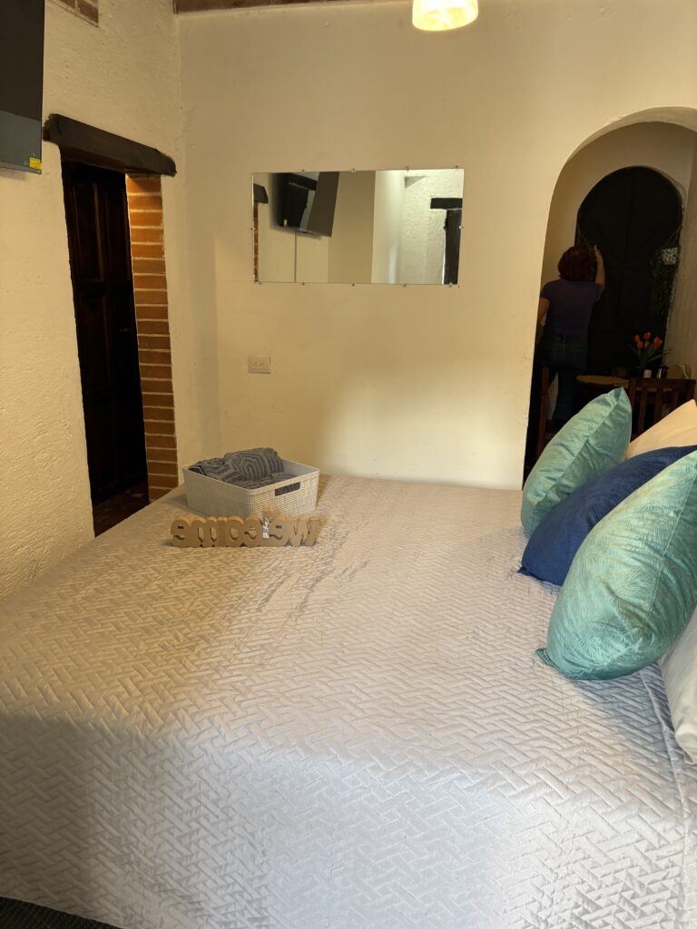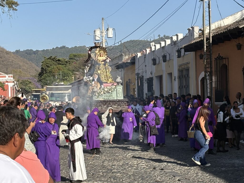 Noi am găsit cu destulă dificultate o cazare potrivită criteriilor noastre în Antigua, respectiv să fie așezată central, să arate plăcut și să aibă un raport calitate/preț optim. Poate și pentru că nimerisem din nou în timpul unei sărbători: prima procesiune care marca începutul Paștelui catolic. (Voi reveni asupra sărbătorii.)