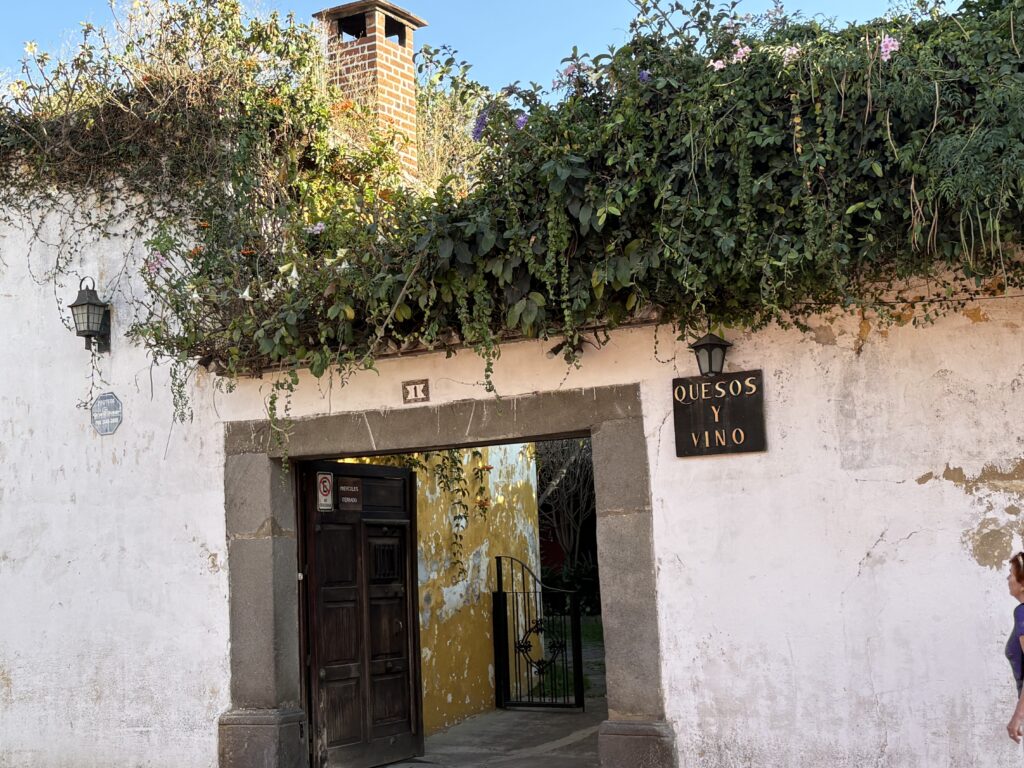 într-un restaurant care purta numele de Queso y vino („brînză și vin”, cam în genul restaurantului de pe Brezoianu Pâine și vin doar că în Antigua vorbim de un spațiu uriaș, în aer liber, ascuns de pe stradă de ziduri groase ca de metereze.