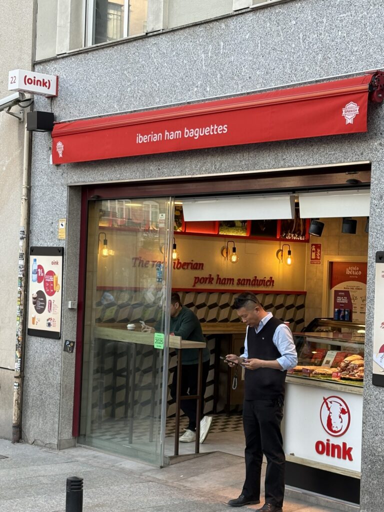 Ne-am cazat, ne-am odihnit, am mai ieșit un pic pe-afară în Plaza Pedro Zerolo (pe a cărei latură se află, uite „dau din casă“ minunatul loc de popas matinal sau nocturn! – e deschis non-stop) Bocadillos Oink Infantas, care e cu atît mai genial cu cît pare nesofisticat, și înapoi la hotel fiindcă… totuși… traversasem oceanul…