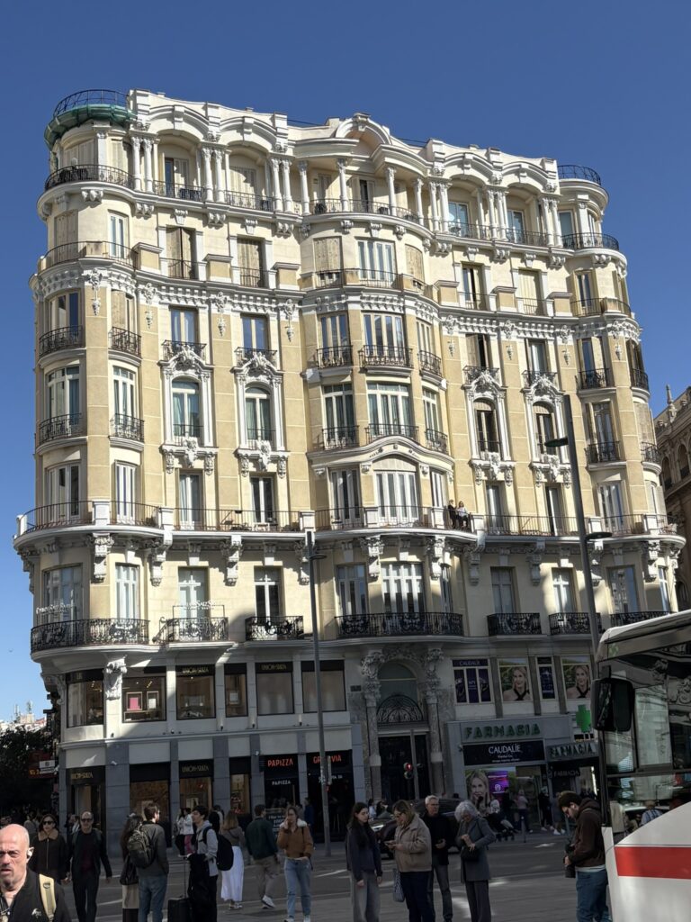 A doua zi, la pas, am ajuns (totuși) în Gran Vía ne-am plimbat, ne-am bucurat, am mîncat afară pentru că ziua era superbă, și ne-am întrebat de ce nu am mai reveni în splendidul Madrid, pe îndelete, nu ca o simplă escală.