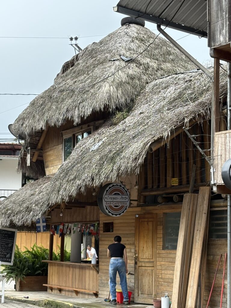 Aș putea face o paralelă cu satul San Pedro de Atacama, de la buza deșertului din nordul Chile: și acolo lumea trăiește de pe urma turismului și – păstrînd proporția populației dintre San Pedroși Mindo – e cam același număr de cîrciumi, magazine artizanale și agenții de turism pe cap de locuitor. În Atacama aridă prezența turiștilor se simte însă la tot pasul, în Mindo cel ploios localnicii sînt cei care dau tonul, turiștii sînt unii care par rătăciți…
