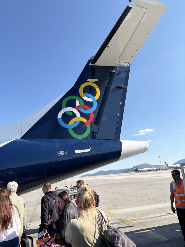 am rugat-o pe tînăra patroană Ekaterini să ne facă și niște sandvișuri pentru a doua zi, „pe avion“, cum se zice (prost) în românește (și mă tot întreb din ce limbă e luat calcul ăsta lingvistic cu „pe“…) Au fost de folos în timpul lungii escale la Atena, bravo Ekaterini!