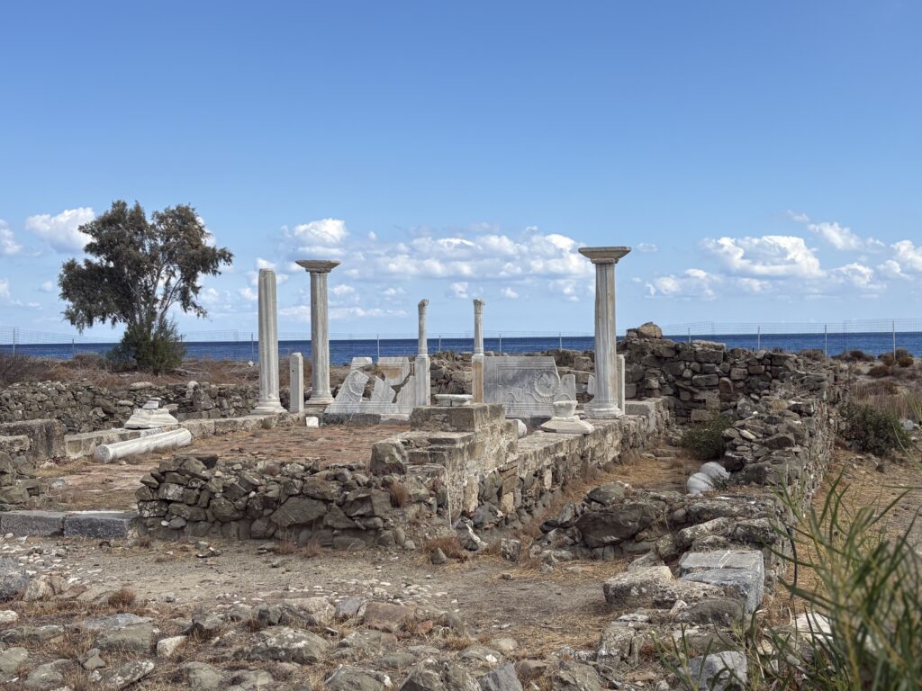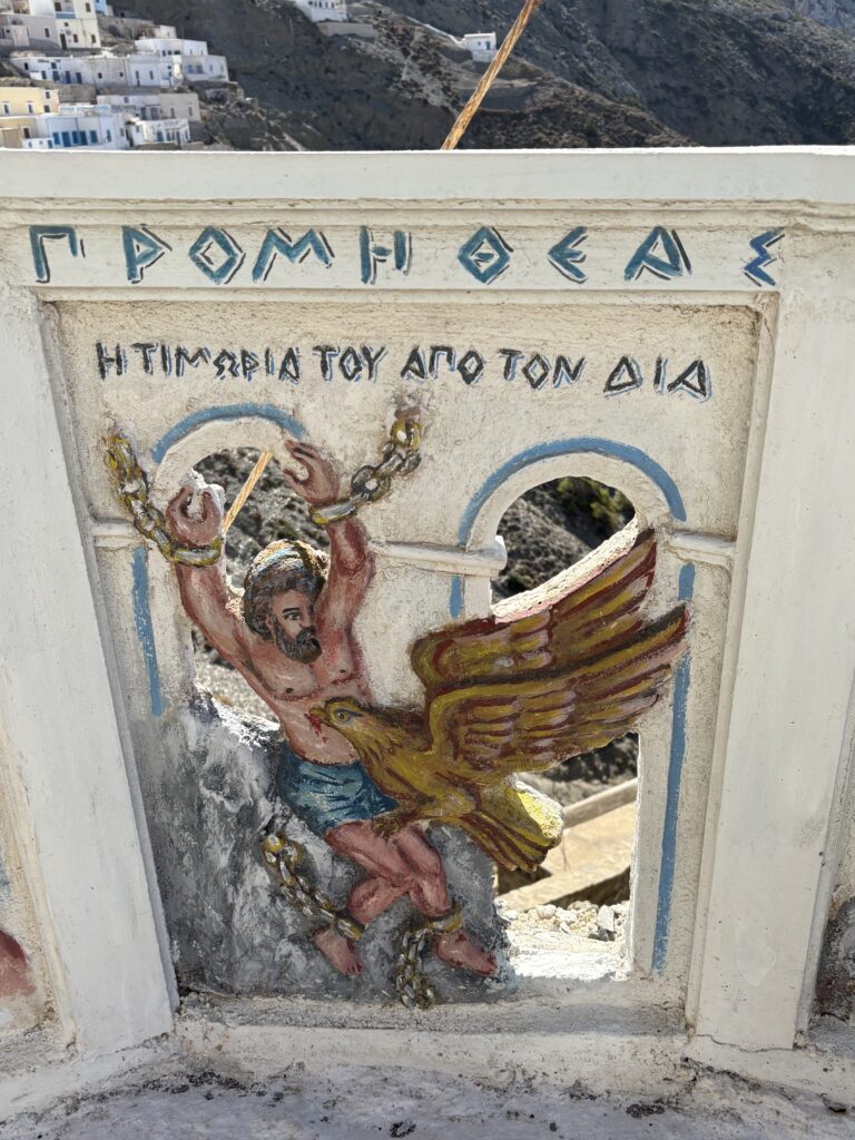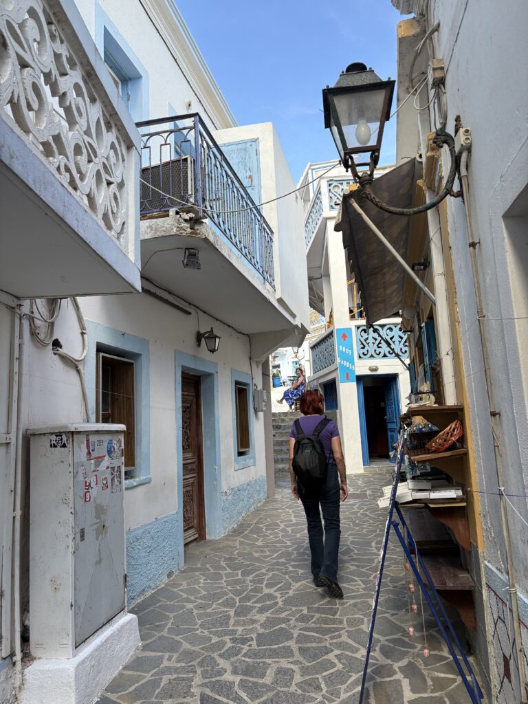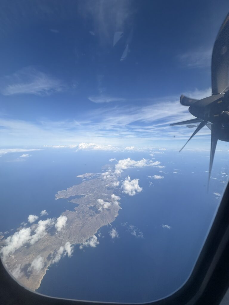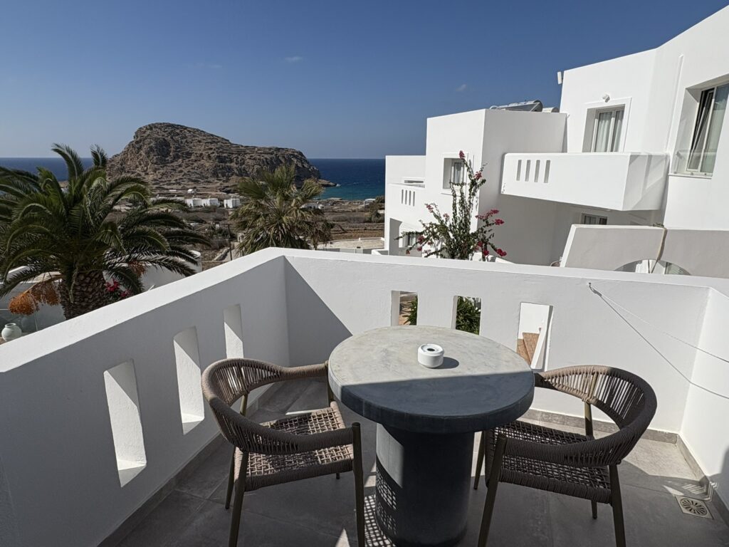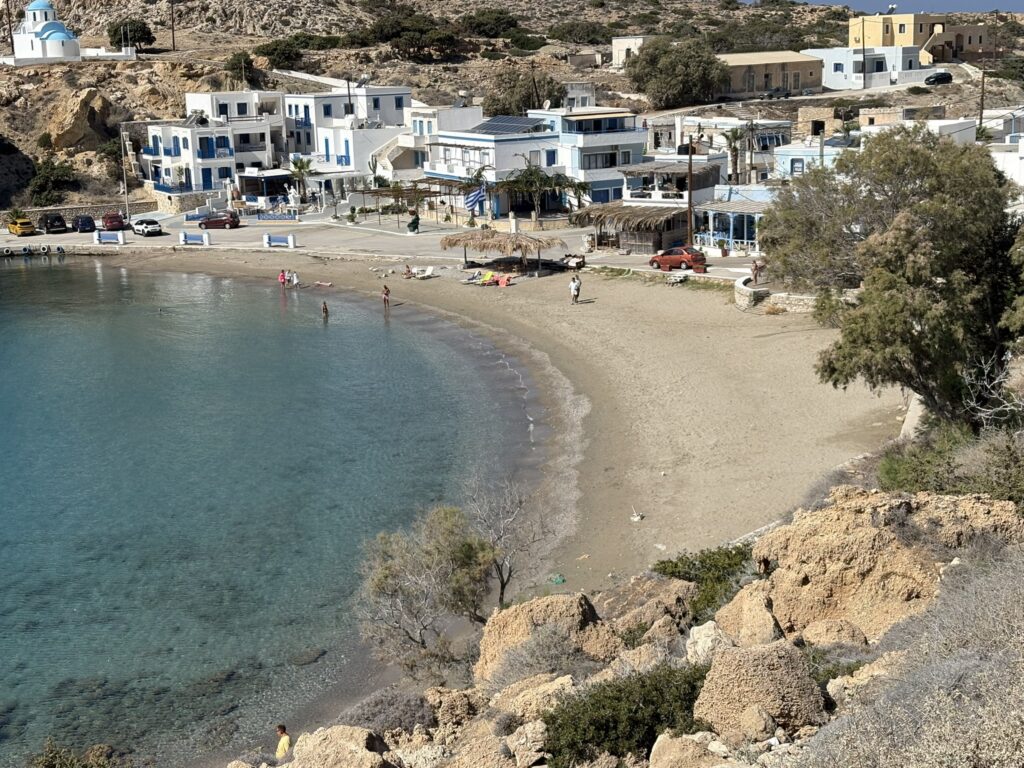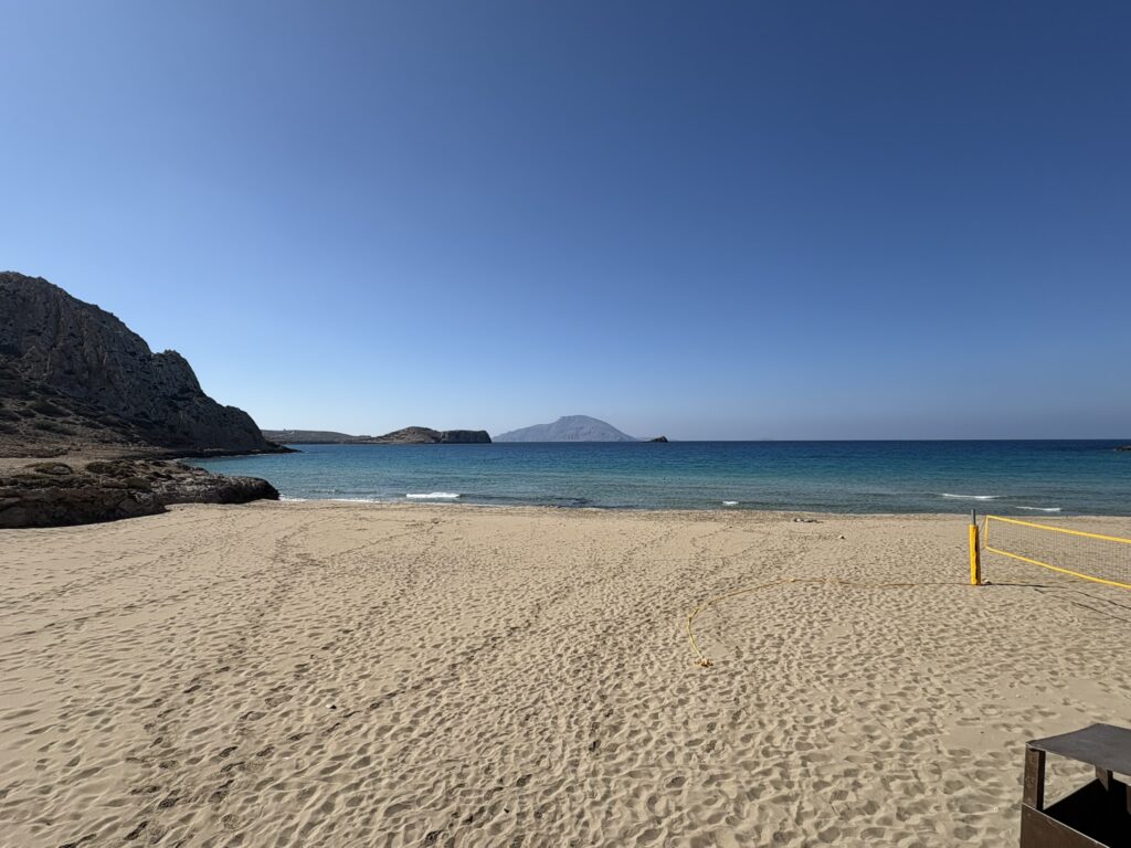 Am ajuns în cea de-a treia și ultima destinație din călătoria „de toamnă“ din 2025: un drum de 23 de km, făcut cu taxiul (transportul în comun e doar… „ilustrativ“ în Kárpathos) pe un teren accidentat, avîntat și muntos, de la Pigádia la Arkása cam într-o jumătate de oră. Practic am tăiat insula de la est la vest, în capătul ei sudic dar asta a însemnat mai întîi să ne cocoțăm pe coama munților… „Karpați“ ca să avem de unde coborî… A costat €35, dar alternativa nu exista așa că… Și i-am dat șoferului destinația noastră din Arkása: hotelul Arkása Palace la care NU făcusem vreo rezervare! (M-am bazat pe faptul că e final de sezon. Și bine am făcut. Evident am negociat un preț muult mai bun decît cu booking.com! 😀)